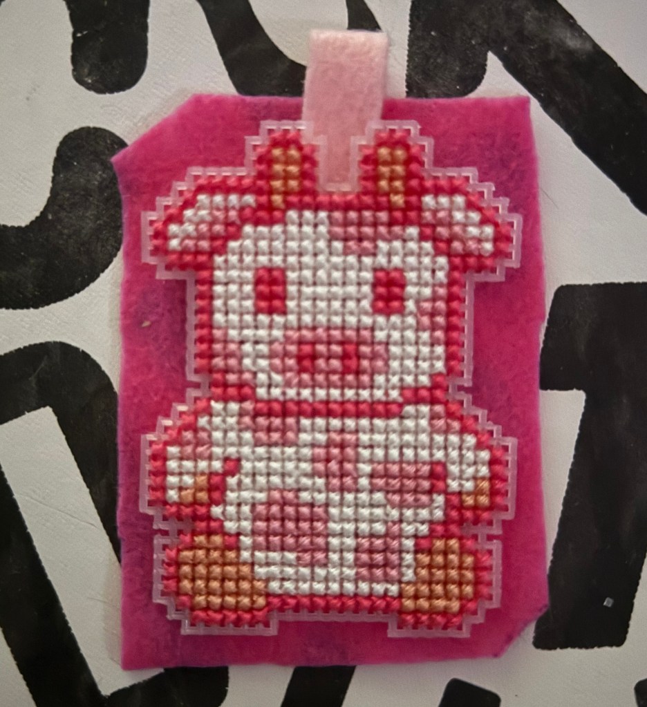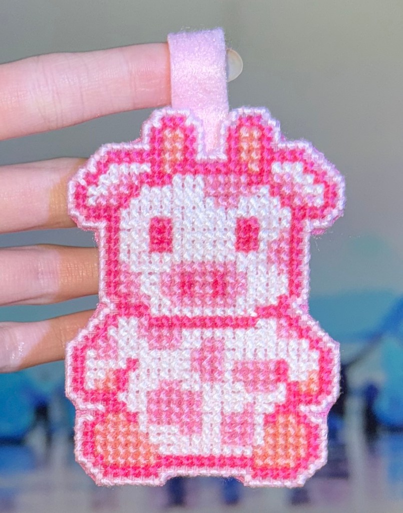 This past Christmas, I wanted to create a pink cow keychain as a gift. For some reason, I couldn’t find a pattern of a cow facing forward, so I had to start from scratch for this project.